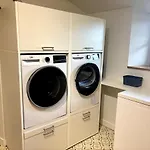 Bathroom facilities also include a separate toilet, a shower, and a washing machine. Hair dryers and towels are included for added comfort.